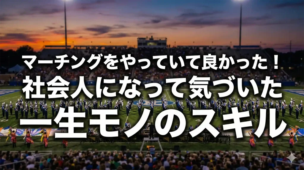 【社会人になっても、あの「熱狂」を諦める必要なんてないんです。】 こんにちは!マーチングの世界にどっぷり浸かって早20年以上。プレイヤーとしても指導者としても、酸いも甘いも噛み分けてきた「頼れる先輩」こと、ブログ管理人の僕です。 突然ですが... 広告