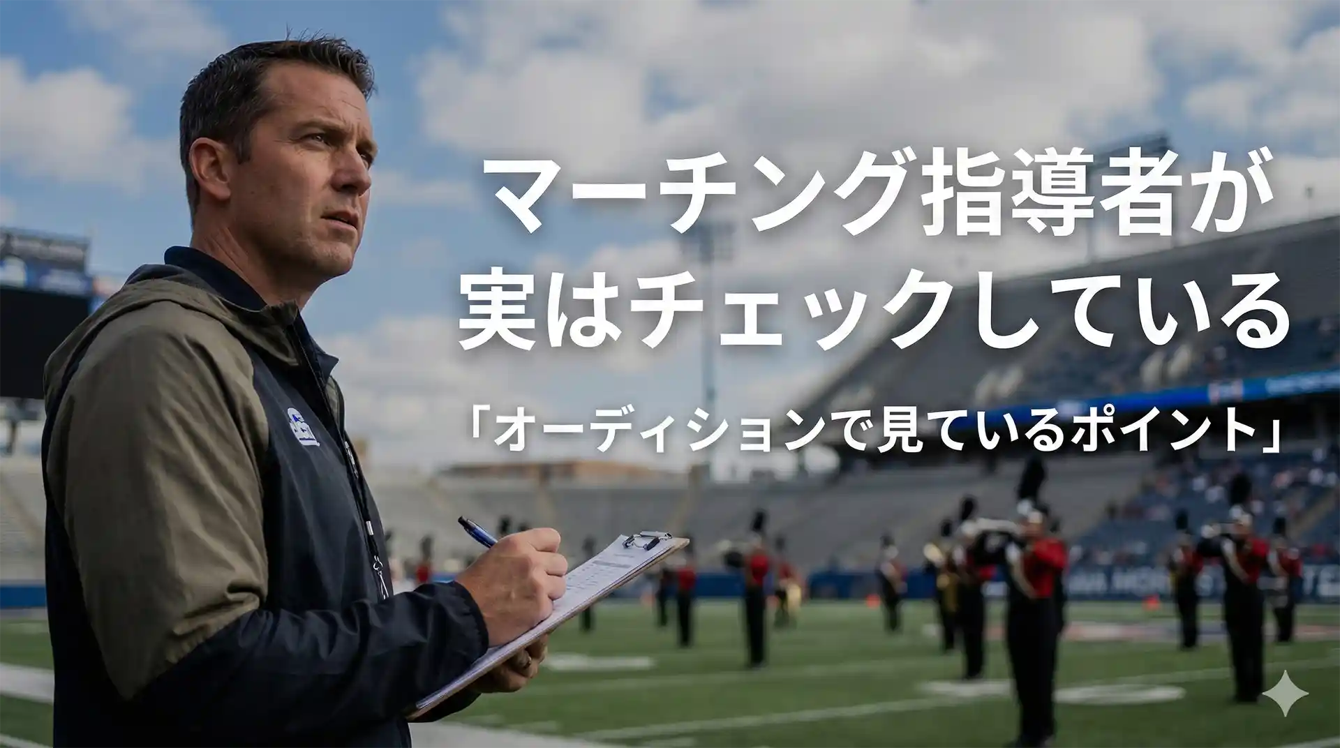 さて、そろそろ新しいシーズンの足音が聞こえてくる時期ですね。マーチングをやっている皆さんにとって、避けては通れない大きな壁……そう、「オーディション」です!